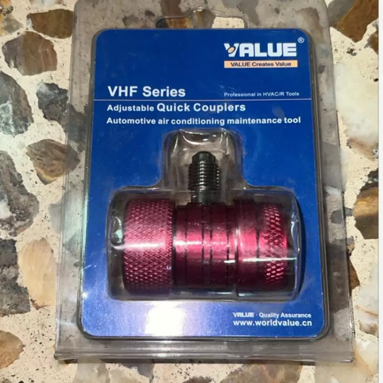 شیر شارژینگ قرمز VHF-SA RED یا کوپلینگ ولیو قطعه ای است جهت اتصال گیج دو قلو manifold به خودرو مورد استفاده قرار می گیرد.کوپلینگ شارژ گاز ولیوو مدل VHF-SA ابزاری حرفه ای و کارآمد برای مشاهده فشار دیسشارژ یا فشار کمپرس کردن گاز مبرد در سیستم تهویه مطبوع خودرو است. این کوپلینگ با طراحی دقیق و عملکرد بی عیب و نقص، اتصالی مطمئن و بدون نشتی را برای شارژ سریع و آسان کولر خودرو فراهم می کند.دارای یک عدد آداپتور جهت اتصال به قسمت فشار پایین و بالا اتومبیل طراحی گردیده است.