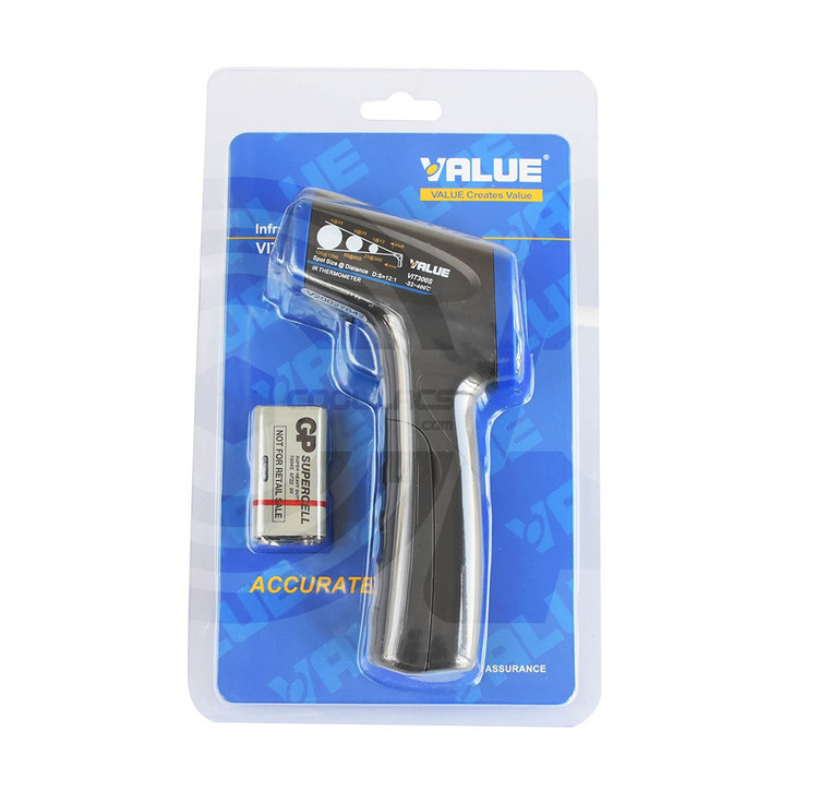 دماسنج لیزری ولیو مدل VIT-300S ابزاری است که برای اندازه گیری دما بدون تماس از راه دور استفاده می شود. این محصول بر اساس تجزیه و تحلیل تشعشعات حرارتی ساطع شده از سطوح آزمایش شده که پرتو لیزر ساطع شده توسط ابزار بر روی آنها می افتد، کار می کند. از ویژگی های این محصول میتوان به مصرف انرژی کم، برای افزایش زمان کار، کاهش فرکانس تعویض باتری ، سنسور مادون قرمز با دقت بالا برای اندازه گیری سریعتر اشاره کرد.