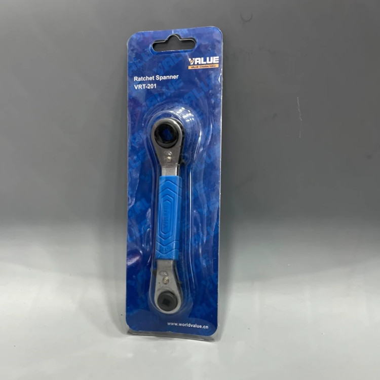 این ابزار یک آچار جغجغهای (همانند آچاربُکسهای موجود در بازار) است که برای باز و بسته کردن شیرهای چهارپَر موجود در کمپرسور-سردخانهها مورد استفاده قرار میگیرد. جنس این آچار از آلیاژ “کروم وانادیوم” میباشد که بسیار محکم و قوی است و قابل استفاده برای 4 سایز 1/4، 3/16، 9/16 و 1/2 اینچ میباشد. این کالا برای تکنسینهای تهویه که با کمپرسورهای سردخانه سروکار دارند، یک ابزار کاربردی قلمداد میگردد.