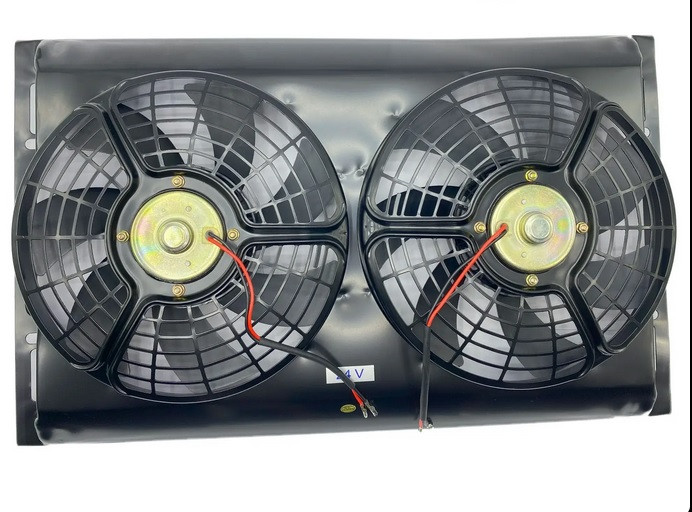 این نوع فن از دو موتور ۲۴ ولت DC (برق مستقیم) و دو مجموعه پره تشکیل شده که درون یک قاب فلزی مستحکم (معمولاً از آلومینیوم یا فولاد) قرار گرفتهاند. قاب فلزی علاوه بر محافظت از پرهها، یک ساختار محکم برای نصب فراهم کرده و به دفع حرارت از موتور فنها کمک میکند.